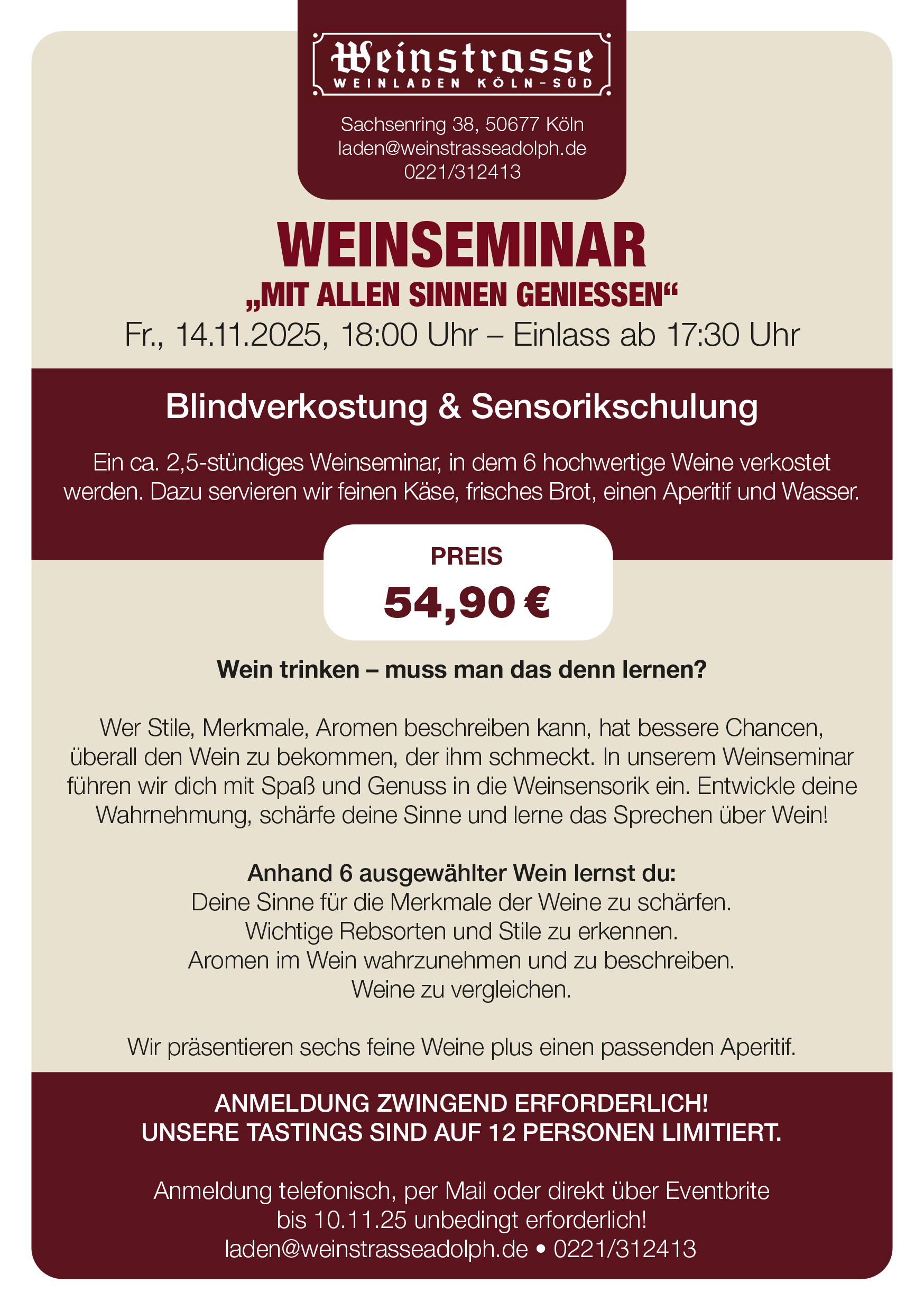 Kontakt: laden@weinstrasseadolph.de • 0221/312413